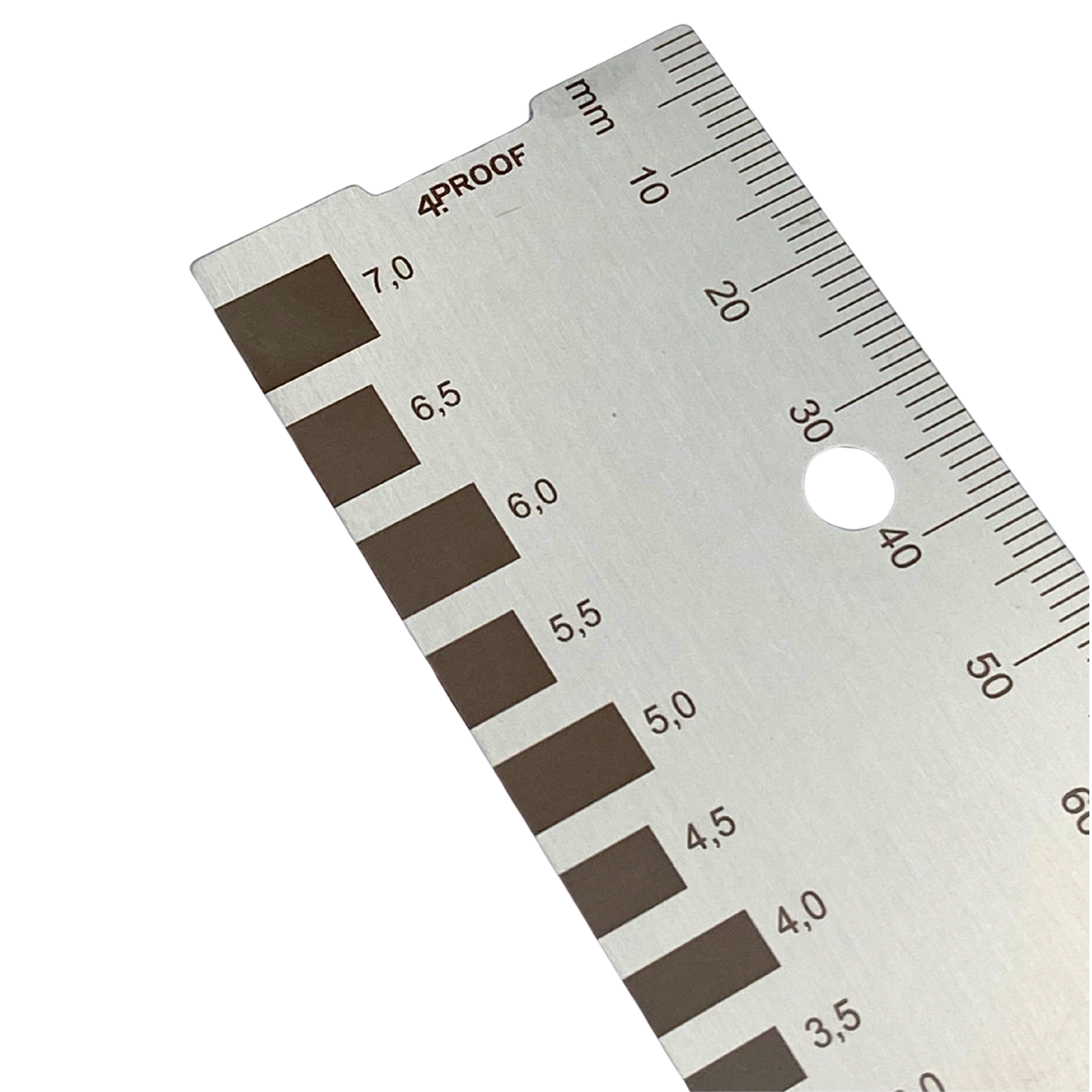 Auf dem Lineal finden Sie neben eine Linealeinteilung bis 160 mm auch alle Rissbreiten