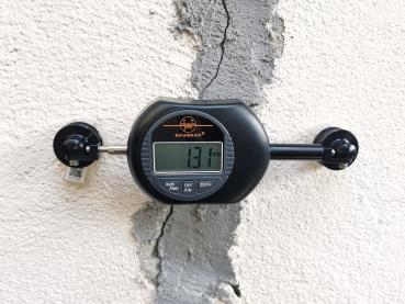 Zur Überwachung eines Risses oder einer Bewegung dieser Art sollte das E1-Riss-Messgerät in Kombination mit P2E1-Platinen zur zweiachsigen Verfolgung und der Saugnac.app für Berechnungen verwendet werden.